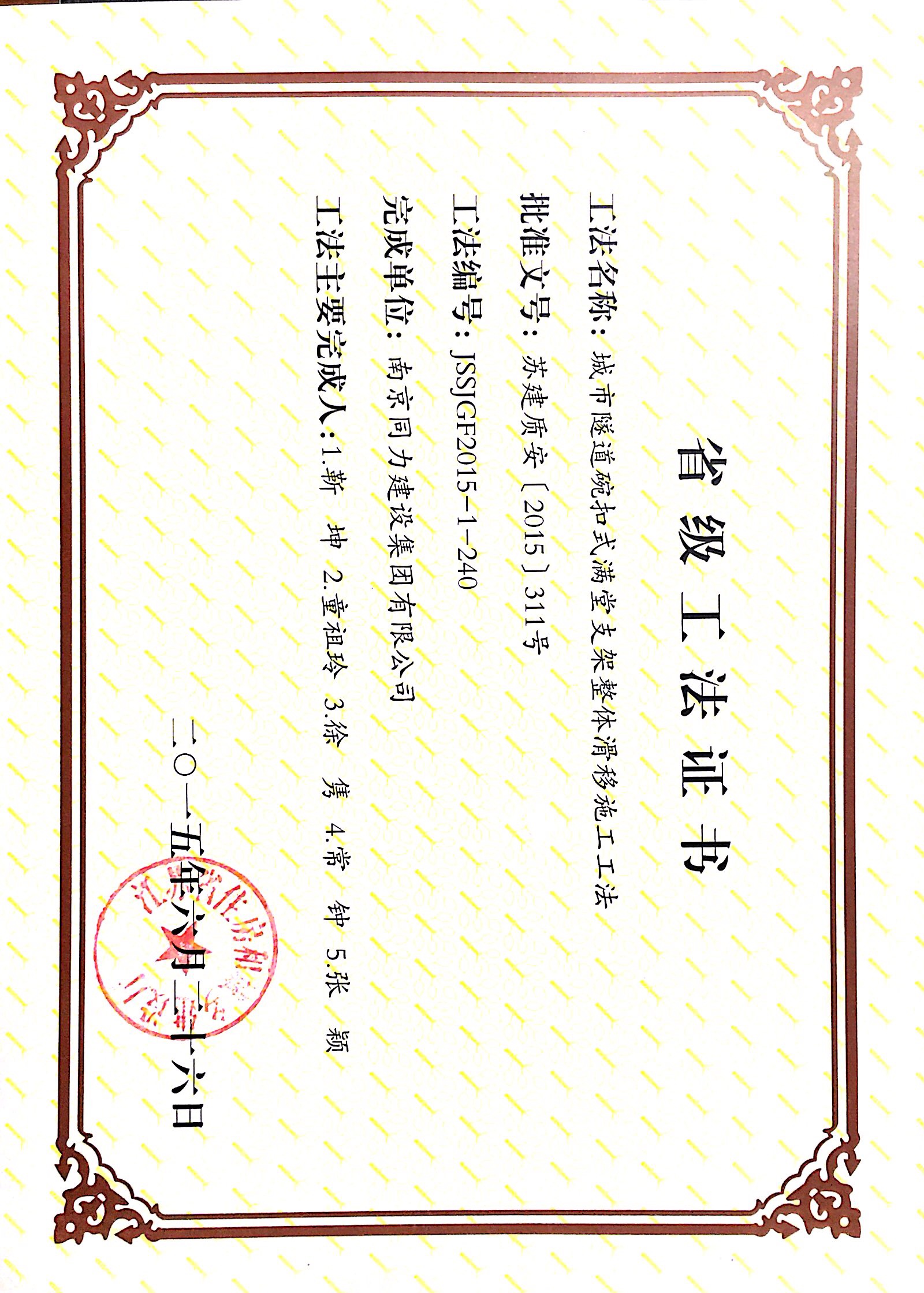 大截面矩形頂管T型后靠施工工法獲得“省...
