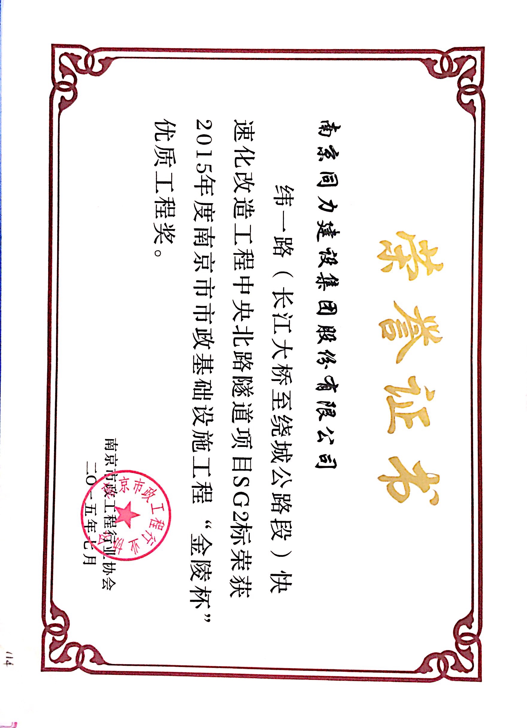 中央北路隧道項目工程獲得“金陵杯”優(yōu)質...