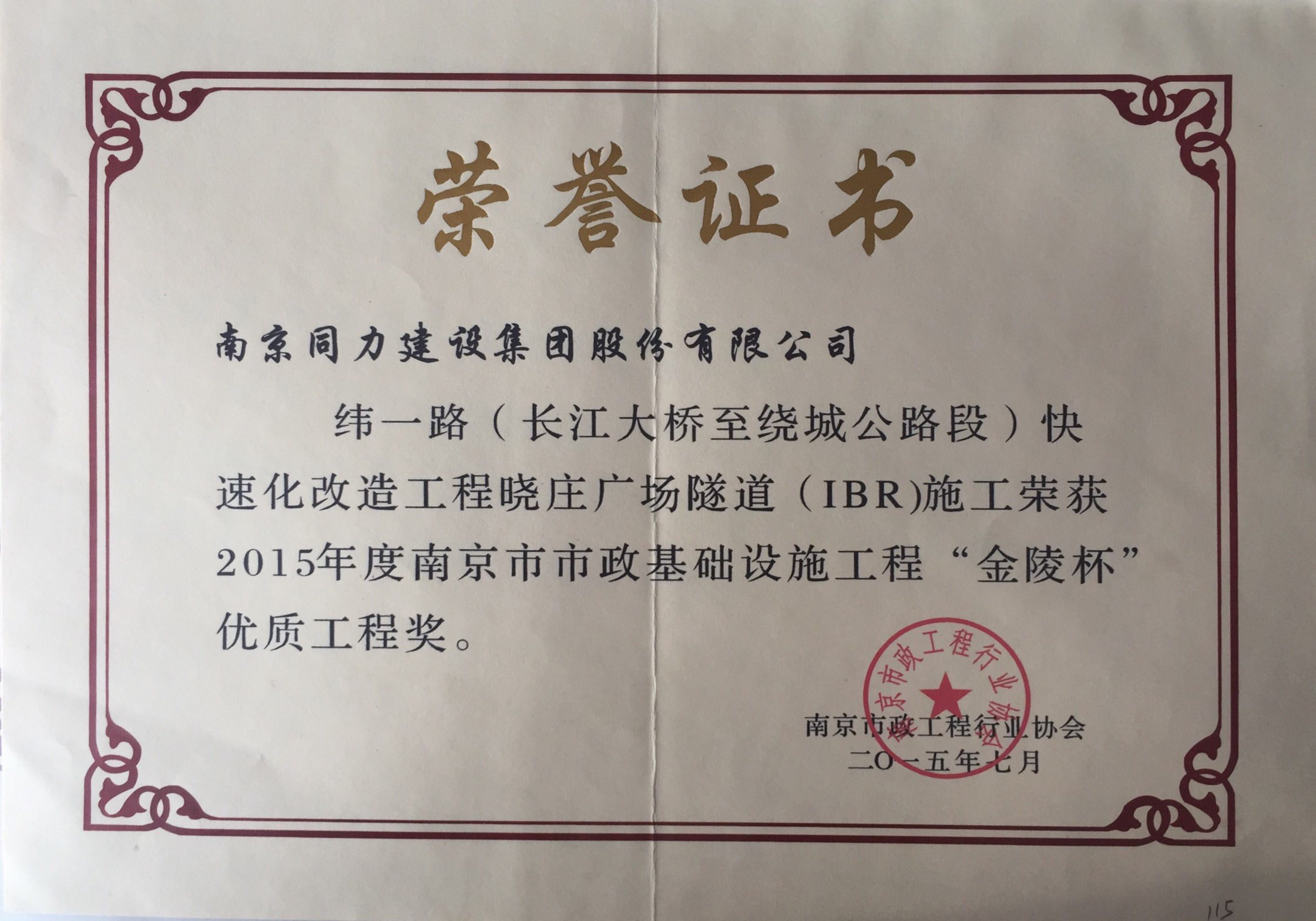 曉莊廣場隧道項目工程獲得“金陵杯”優(yōu)質...