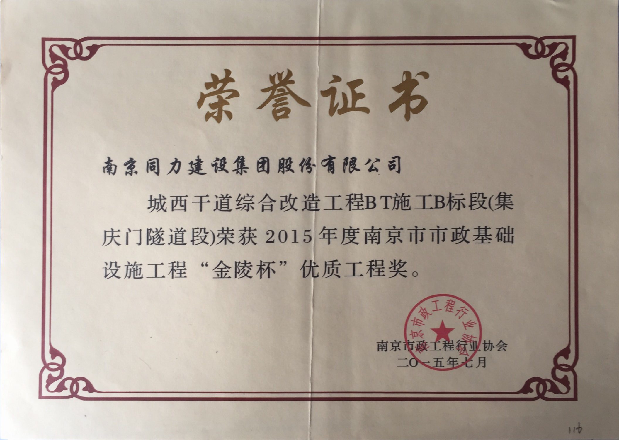 集慶門隧道項目工程獲得“金陵杯”優(yōu)質工...