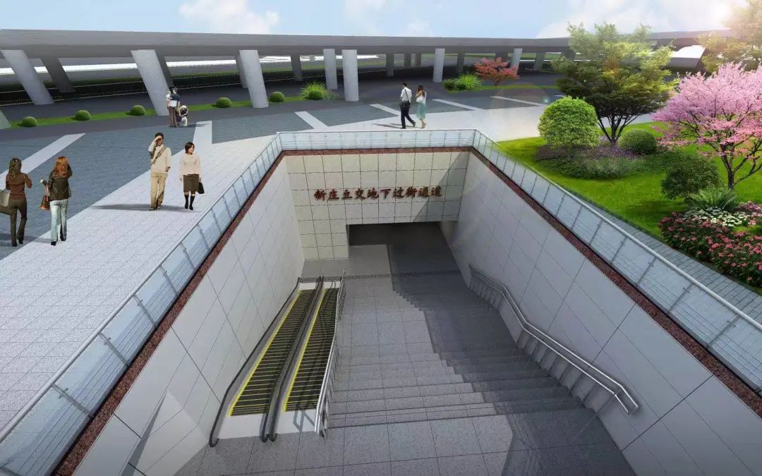 新莊立交地下過街通道由南京林業大學向西北方向布設,并在玄武大道下方呈“Y”形分叉,連接紫金聯合立方、南京林業大學和高力六角廣場。通道總長361.5m,三條主通道長 232.8m,此次貫通的是紫金聯合立方至玄武大道段,全長110m。